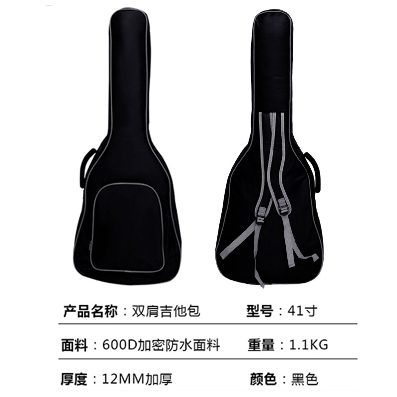 Factory supply 41 inch thick cotton guitar bag black waterproof shoulder guitar backpack wholesale