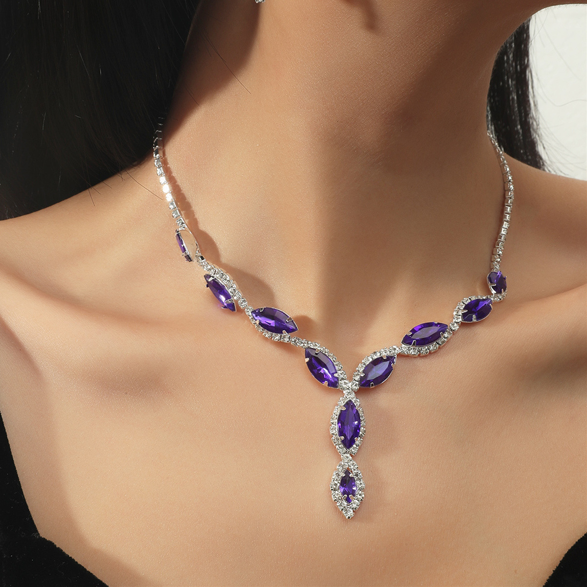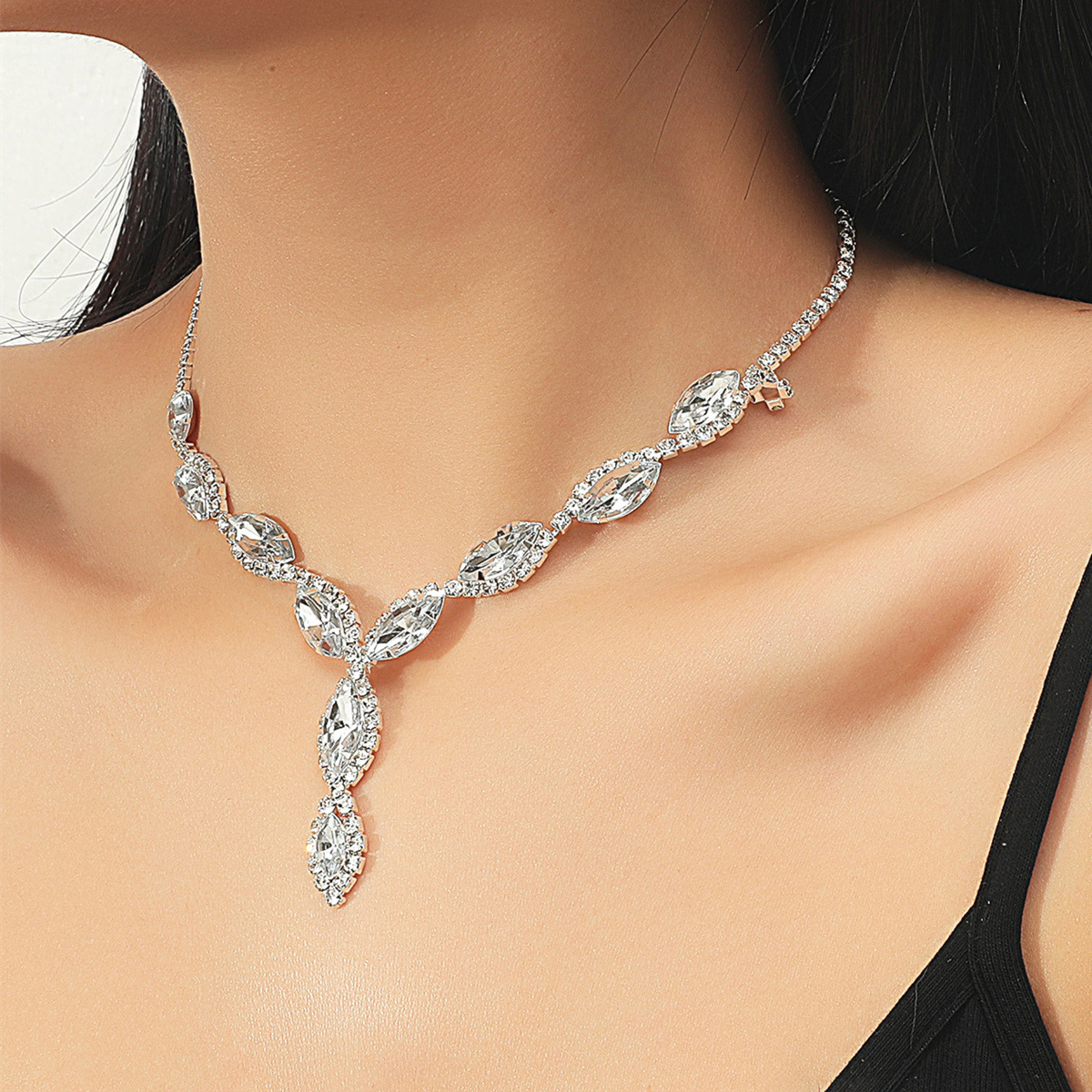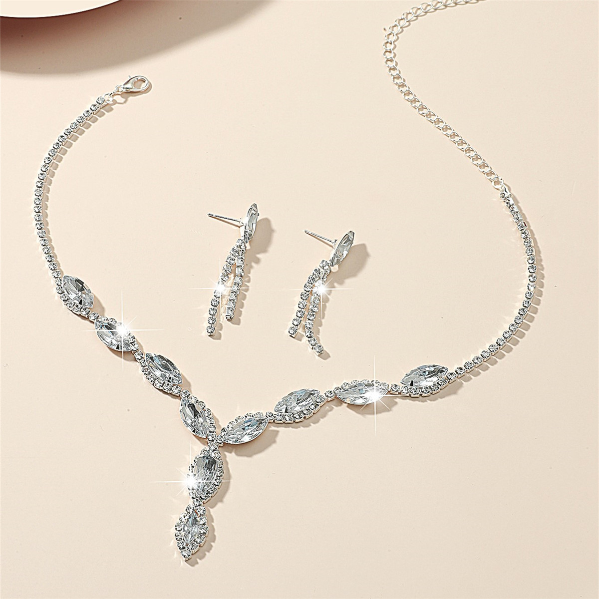 | nameOriginal | Factory supply fashion simple diamond necklace earrings European and American style bride earrings necklace set 2 pieces |