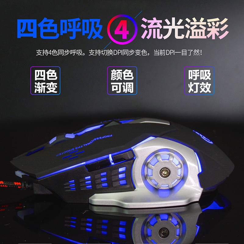 Factory wholesale 18 du X7 game USB wired mouse four-color breathing light game Mouse