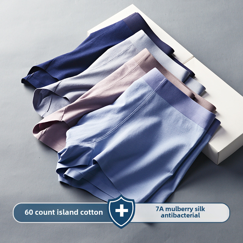 Factory wholesale 60 Xinjiang long-staple cotton underwear men’s solid color cotton seamless mulberry silk 7A antibacterial boxer shorts