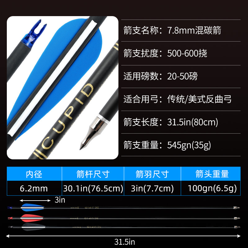 | nameOriginal | Factory wholesale 7.8mm mixed carbon arrow rubber feather American retroreflective composite pulley bow arrow archery equipment |