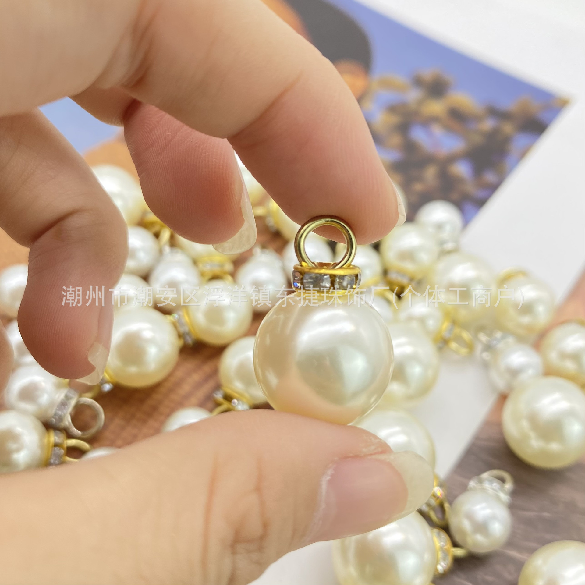 Factory wholesale ABS bright pearl pendant wedding shop gift bag imitation pearl pendant clothing accessories decorative zipper head