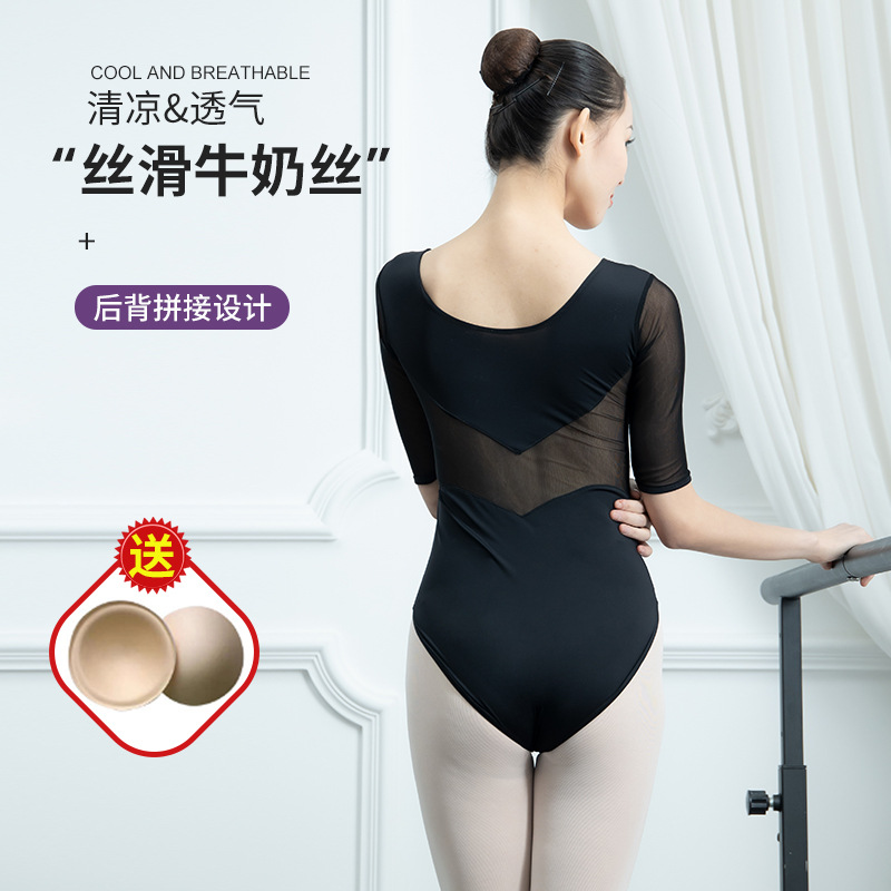 | nameOriginal | Factory Wholesale Ballet Dance Practice Suit Female Adult Gymnastics Suit Leaky Back Mid-Sleeve Short-Sleeved Body Suit Jumpsuit |