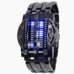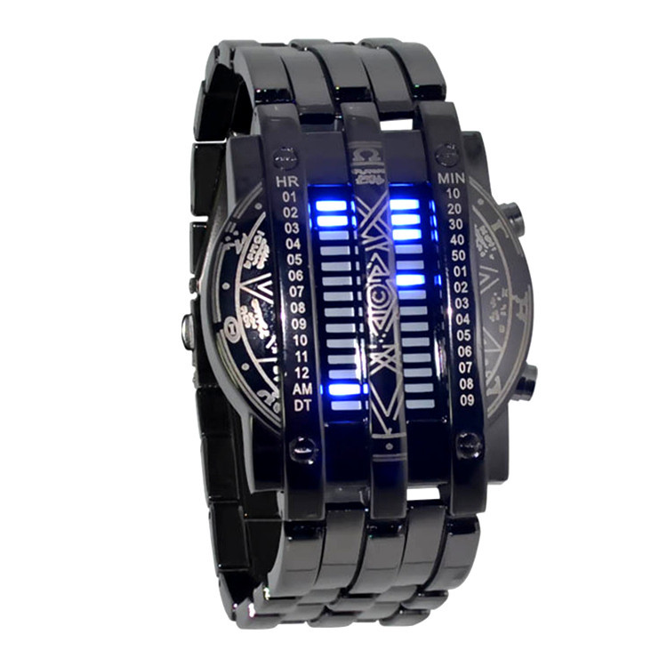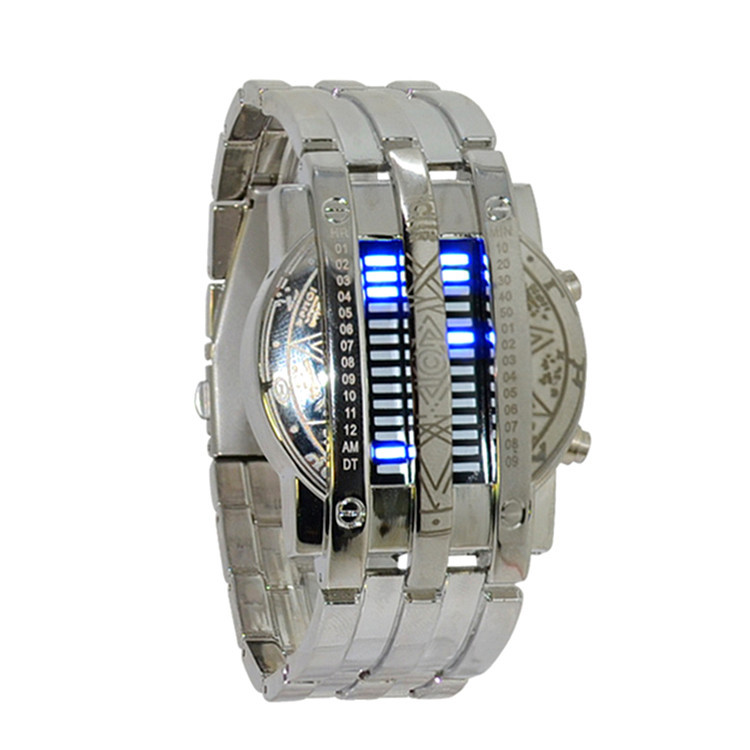 Factory wholesale binary steel band LED watch creative double row light watch Iron Man two vertical row electronic watch