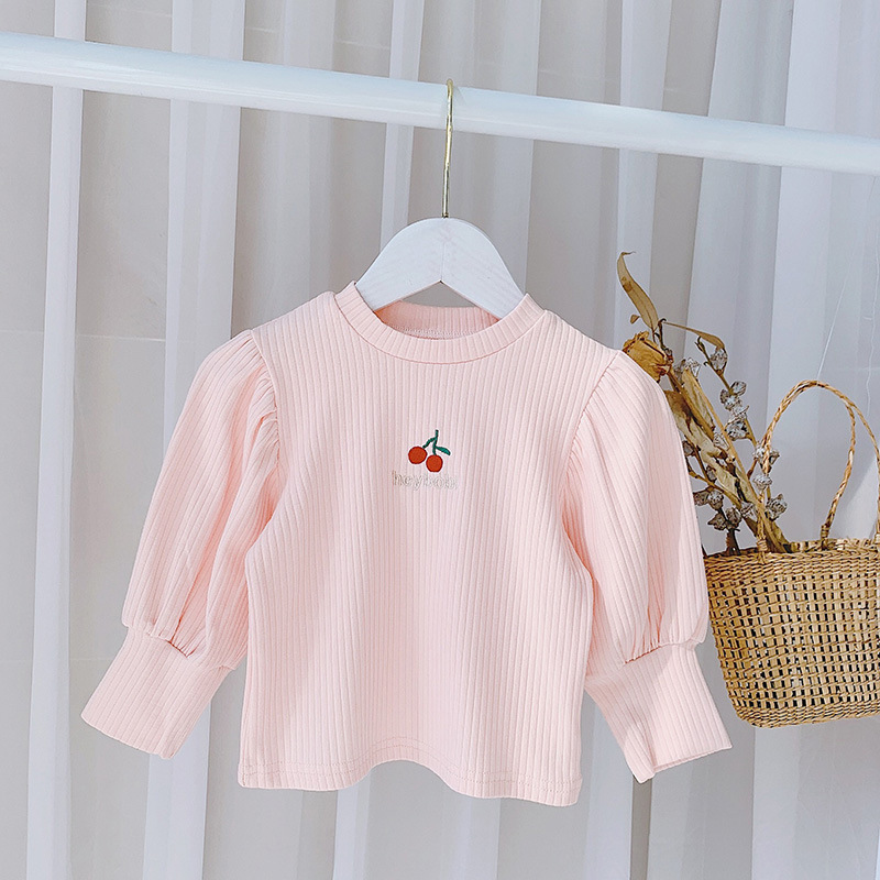 | nameOriginal | Factory wholesale children's clothing Spring and Autumn New girls' long-sleeved shirt Western style girls' Cherry elastic cuff bottoming shirt |