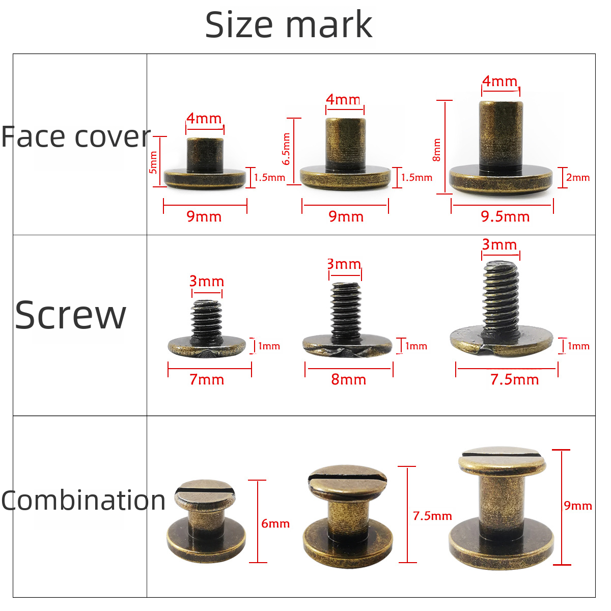 | nameOriginal | Factory wholesale flat head female rivet connection bookkeeping book screw notebook metal fixed binding belt screw |