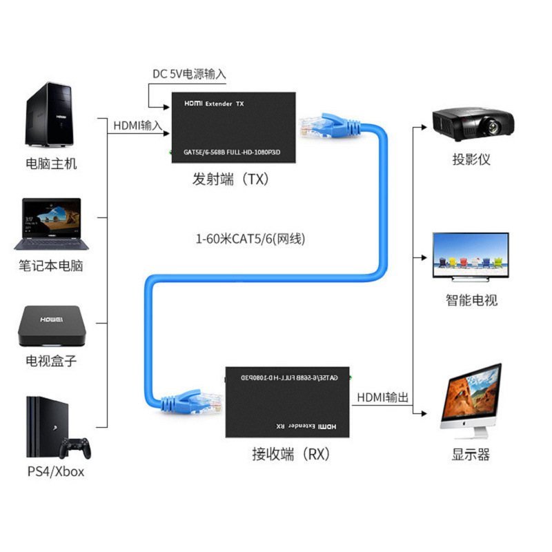 Factory wholesale HDMI network extender 60 m 1080p single network cable extension HDMI signal extender
