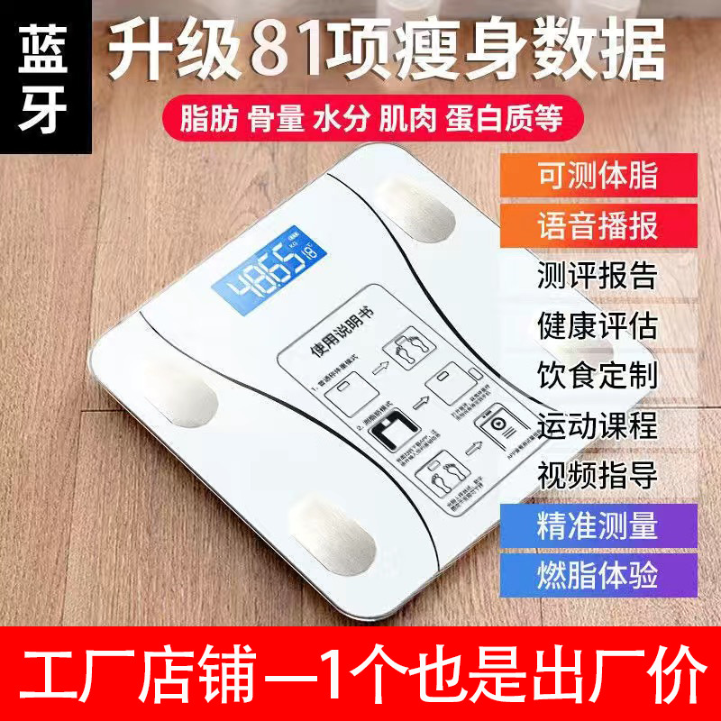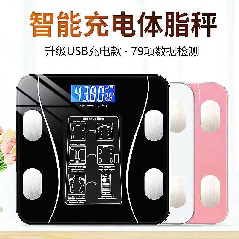 Factory wholesale intelligent weight scale body fat scale household cross-border electronic scale USB charging body fat scale Bluetooth connection
