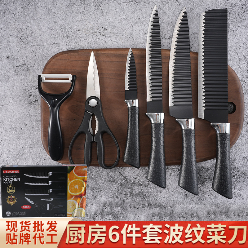 | nameOriginal | Factory wholesale kitchen 6 piece knife suit slicing knife wooden handle stainless steel corrugated chef special knife |