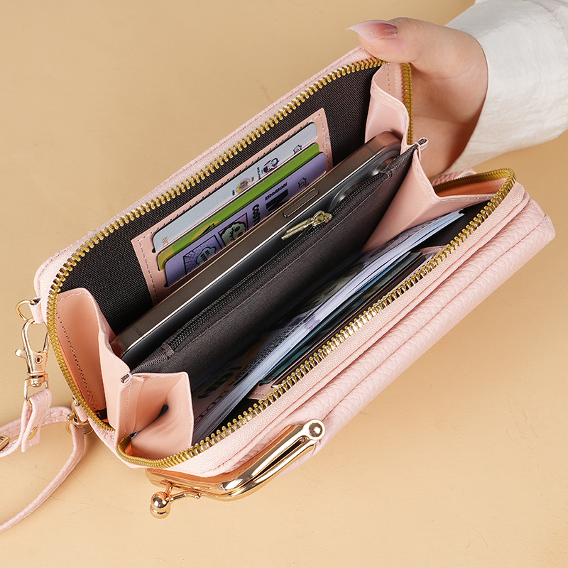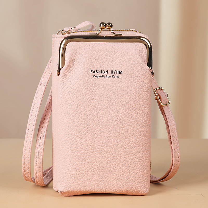Factory wholesale litchi grain shoulder small messenger bag Korean solid color multi-function mobile phone bag large capacity small bag women