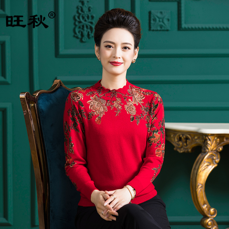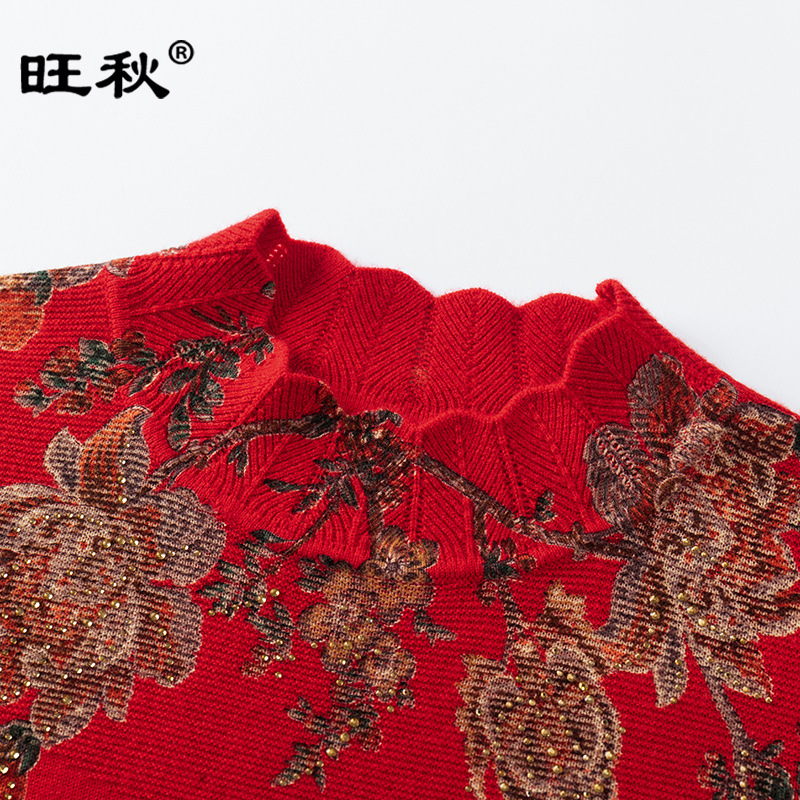 Factory wholesale lotus leaf half high round neck sweater diamond printed sweater pullover warm bottoming shirt M98966