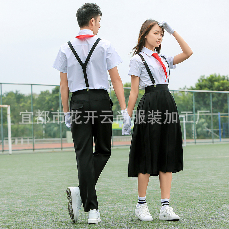 | nameOriginal | Factory wholesale men's black trousers school uniform suit pants middle school student college style class clothes summer suit |