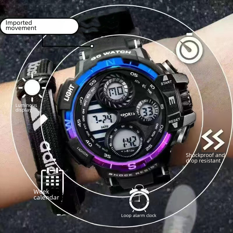 | nameOriginal | Factory wholesale Middle School watch men's luminous waterproof electronic watch multi-function alarm clock large sports fashion watch |