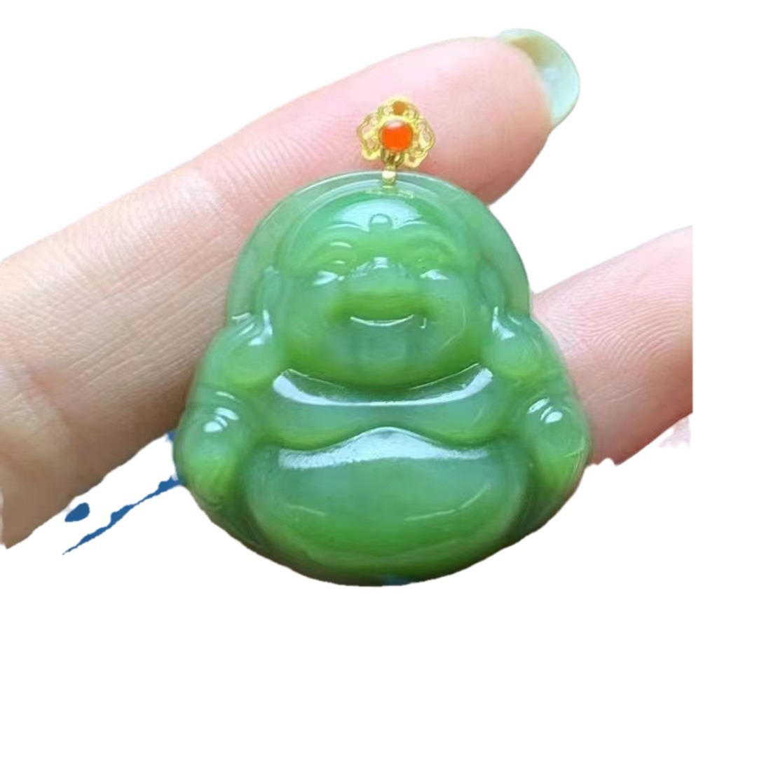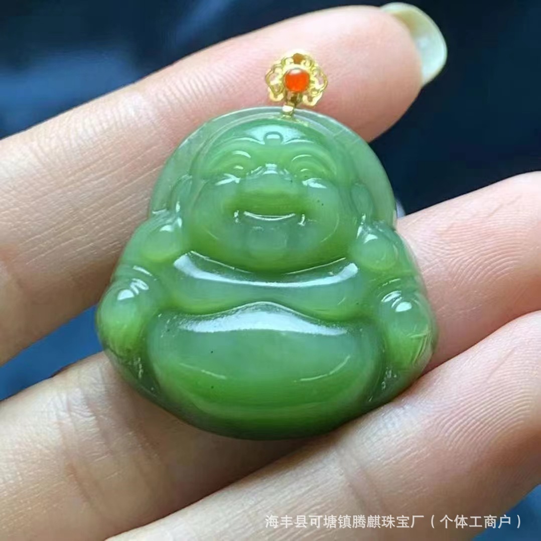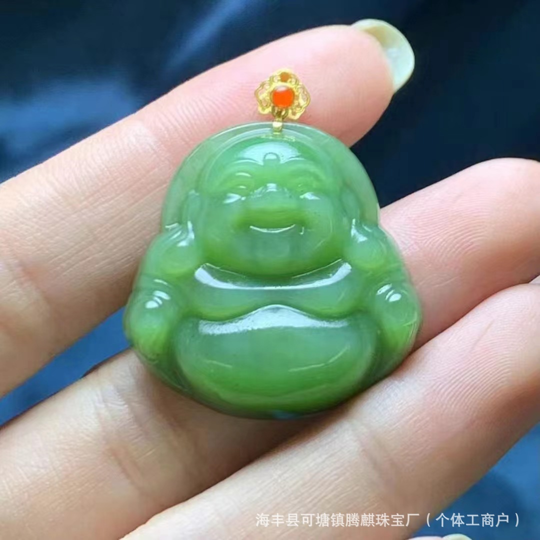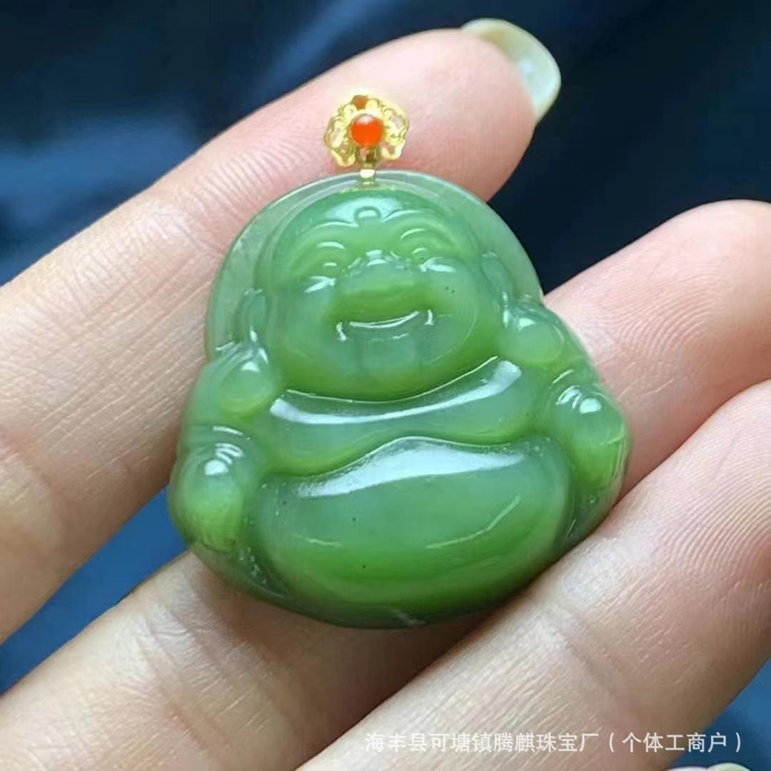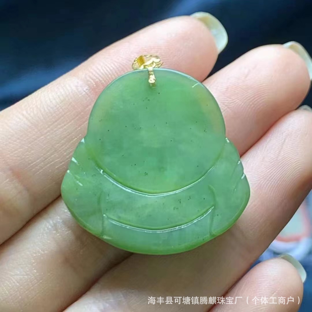 | nameOriginal | Factory wholesale natural Russian material Hetian jade jasper cat's eye laughing Buddha 18k gold buckle density good delicate oily |