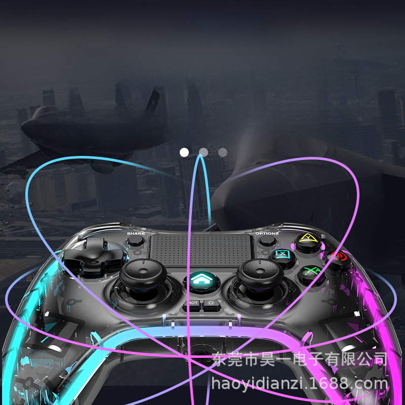 Factory wholesale PS4 private model transparent RGB wireless 2.4g Bluetooth game handle PC computer NS TV PS Android