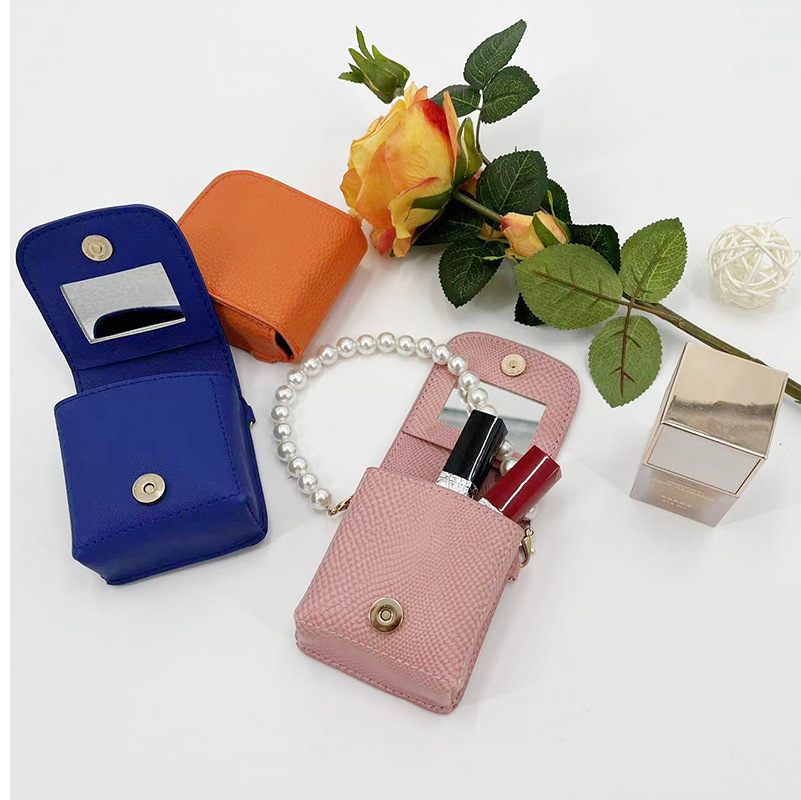 Factory wholesale PU fashion mini bag chain Joker storage cosmetic bag slung small bag mouth red envelope with mirror