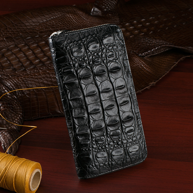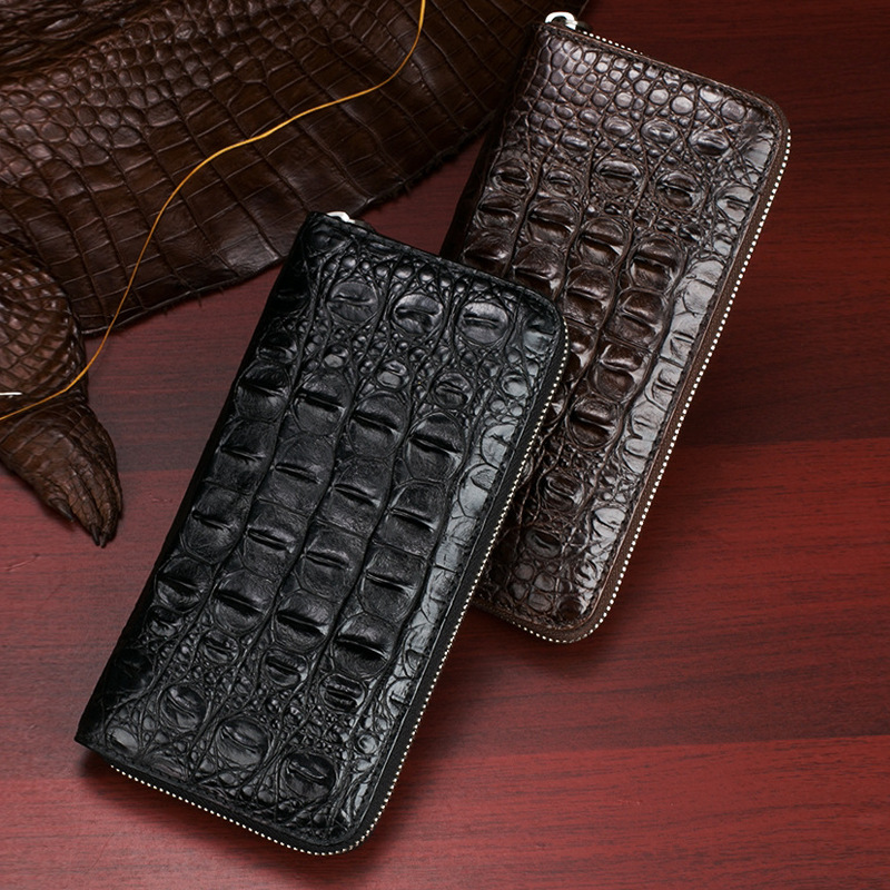 Factory wholesale Siamese crocodile skin clutch bag leather wallet crocodile leather men’s bag trumpet hand bag long wallet men’s