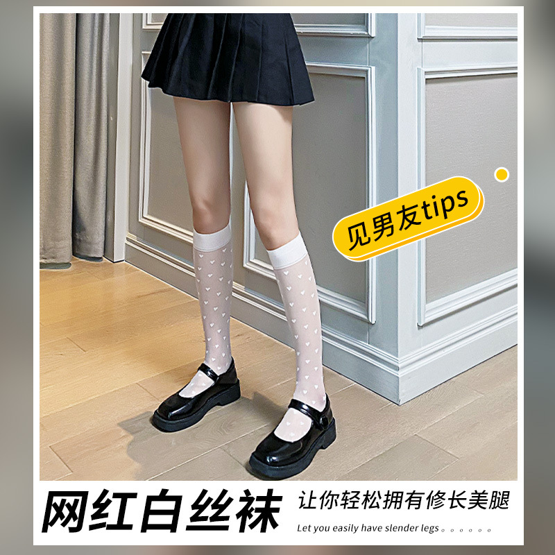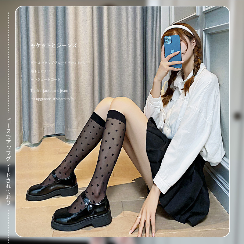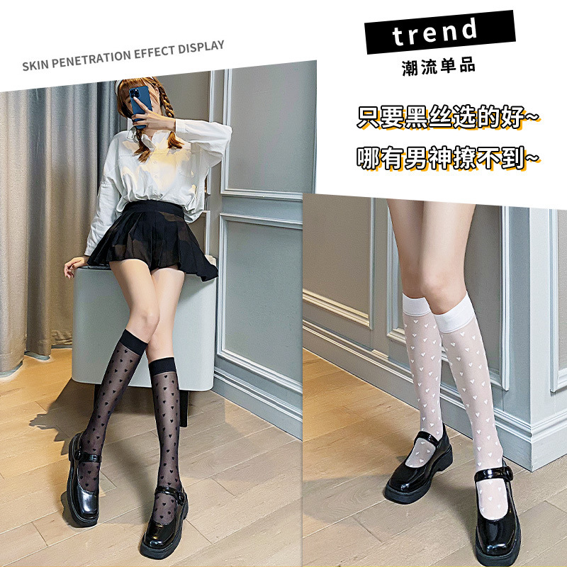 | nameOriginal | Factory wholesale spring and summer thin love calf socks ins tide cored silk ladies socks Japanese transparent stockings |
