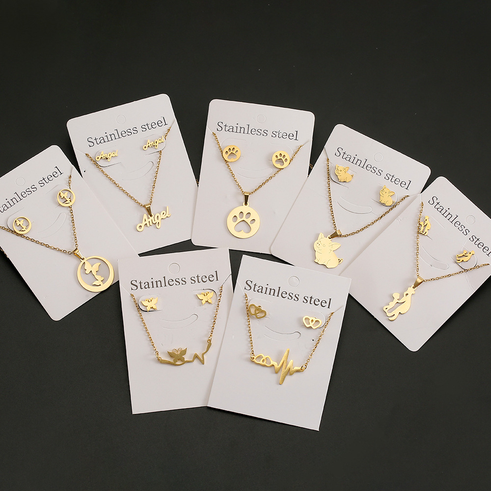 | nameOriginal | Factory wholesale stainless steel butterfly love English letter earrings necklace set Korean temperament earrings clavicle chain |