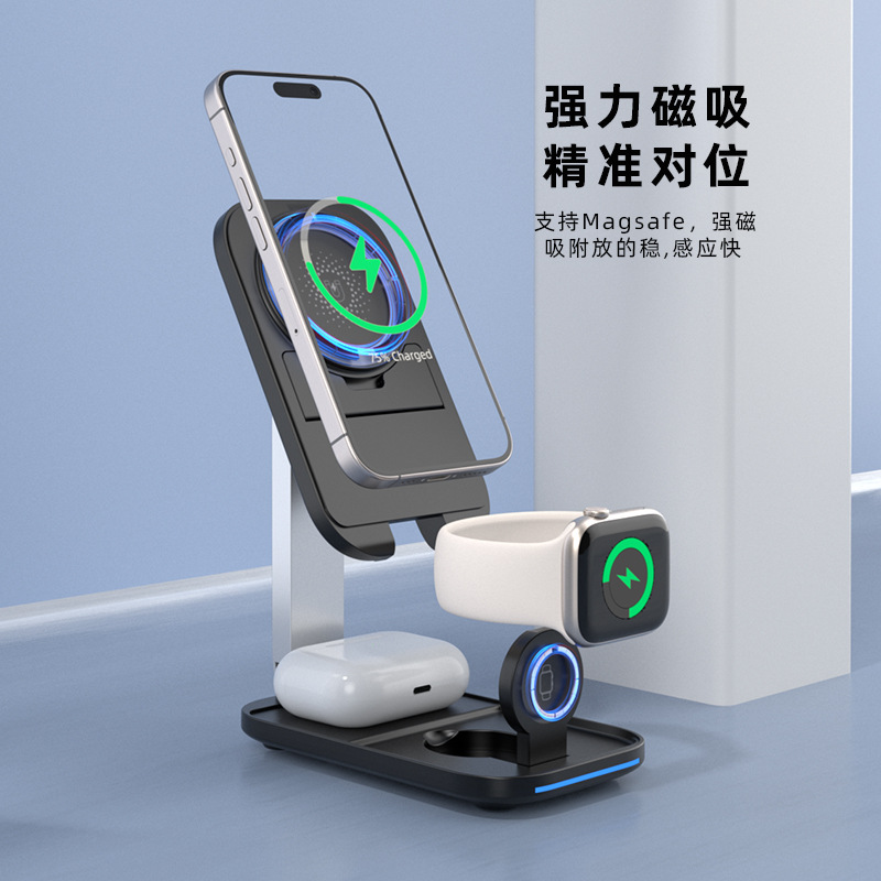 | nameOriginal | Factory wholesale three-in-one wireless charger 15W foldable desktop magnetic multi-function flat fruit wireless charger |