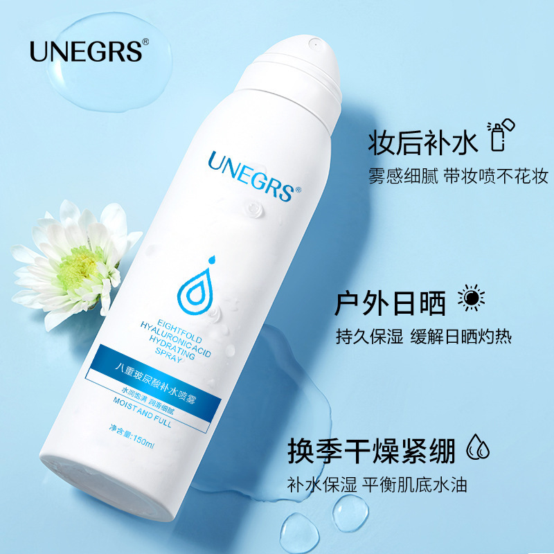 | nameOriginal | Factory wholesale UNEGRS eight-fold hyaluronic acid moisturizing spray refreshing moisturizing essence toner genuine goods generation hair |