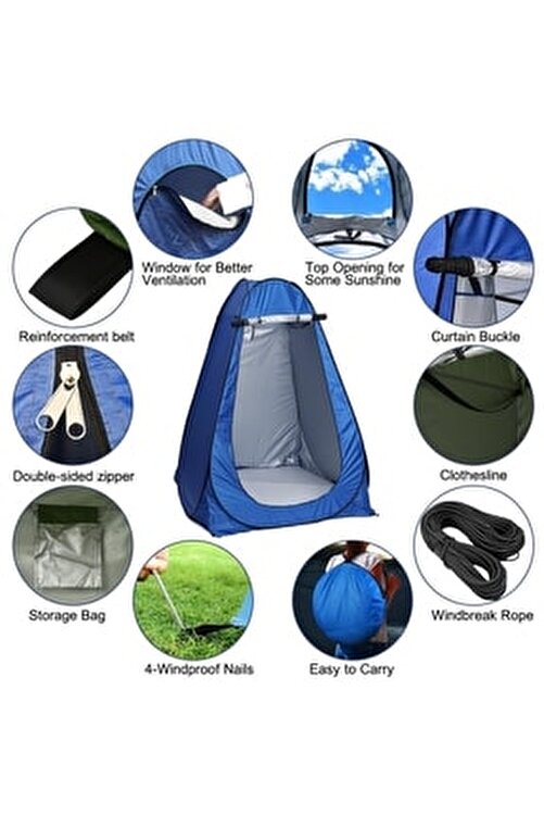 It is suitable for use as a toilet, shower or dressing cabinet.It is especially the right choice for family camps.It can be used in camps made on the beach. It allows you to install in seconds to use in your outdoor activities. Due to its automatic installation, it is in a structure that can be quickly installed and collected. Raincoat in the upper part can be removed at will. Thanks to the mesh glass part, it provides ventilation and from the inside It can be closed. Inside there are 2 pockets with mesh. Mobile phone, shampoo, etc. can fit comfortably in this space. Thanks to the zippered carrying case, it is easy to carry and store. Dimensions (Height x Width): 190 x 120 x 120 cm