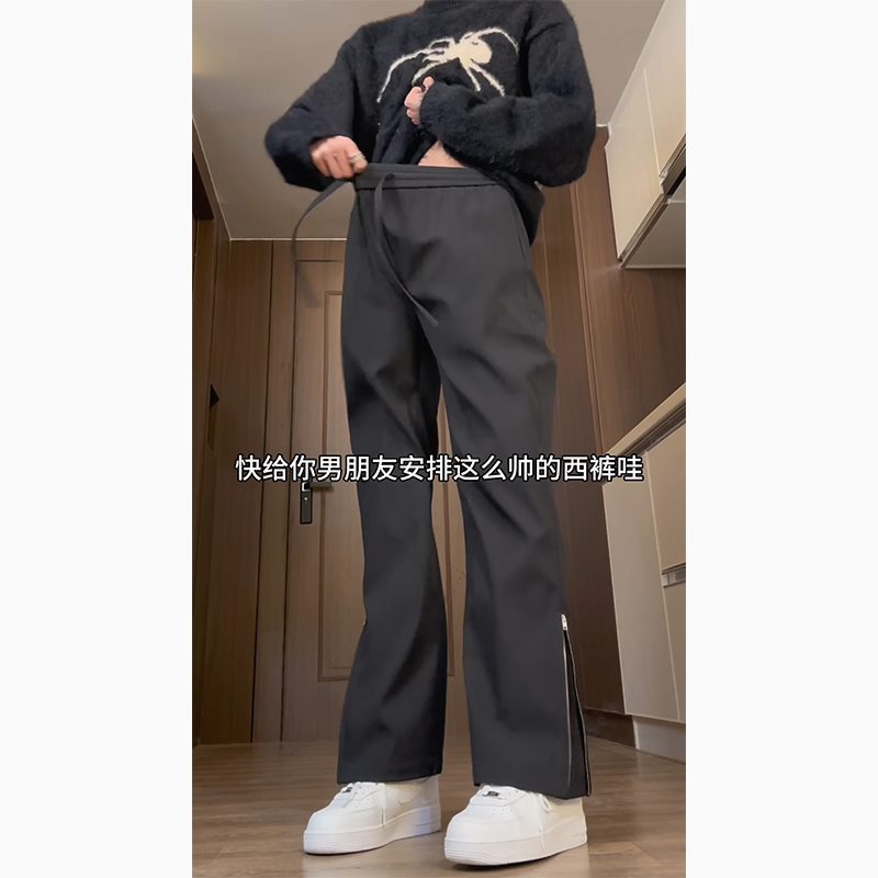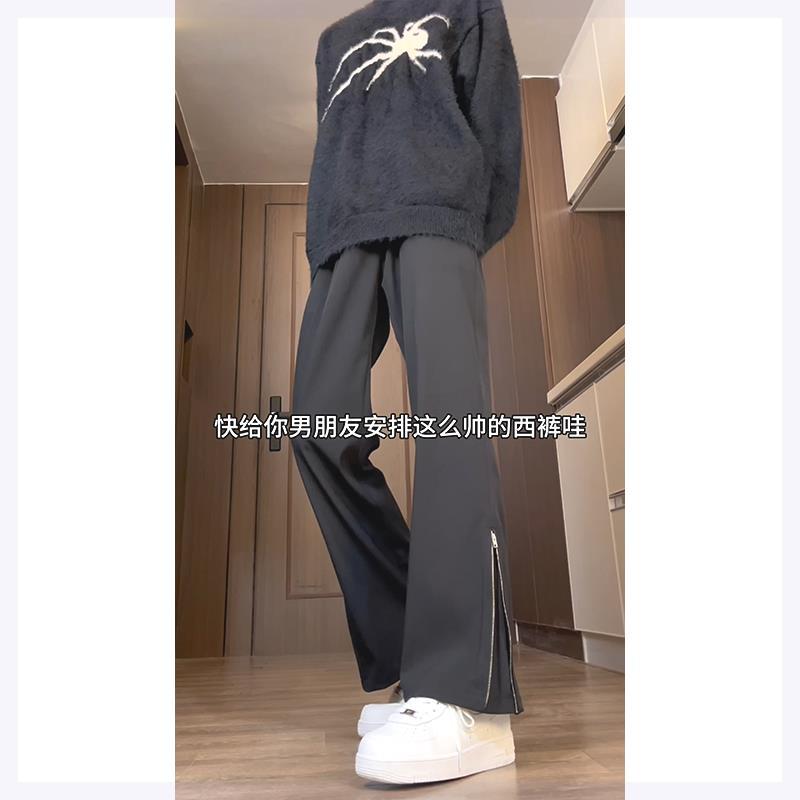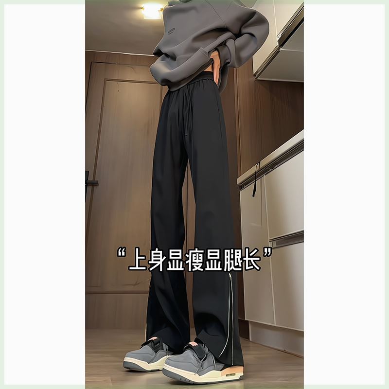 | nameOriginal | Faiksha Men's Side Zipper Split Micro-Lazy Pants Spring Slimming Straight Casual Pants Dipped Loose Mop Pants |