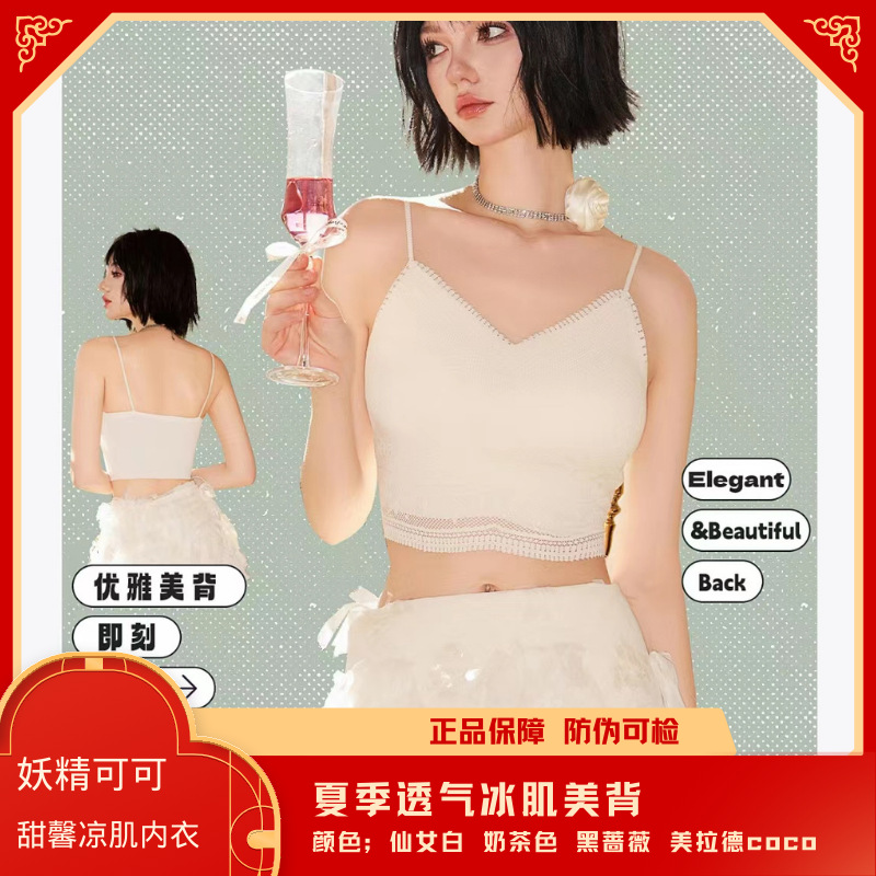 | nameOriginal | Fairy cocoa sweet cool skin underwear summer thin lace strap beauty back fit fixed chest pad push up breathable |