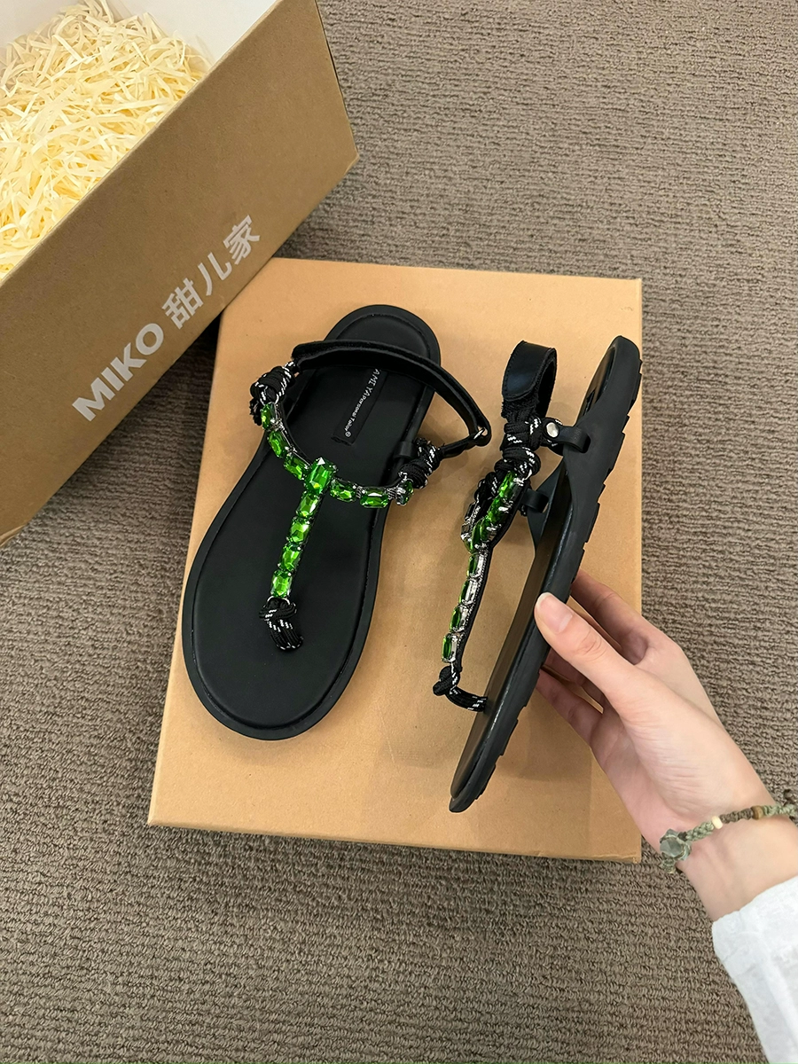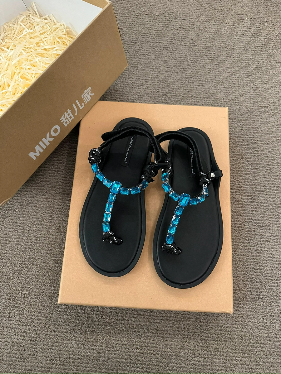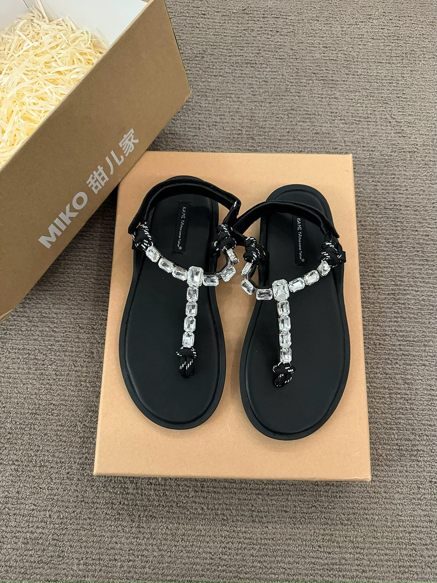 | nameOriginal | Fairy flat thong black retro resort style sandals |