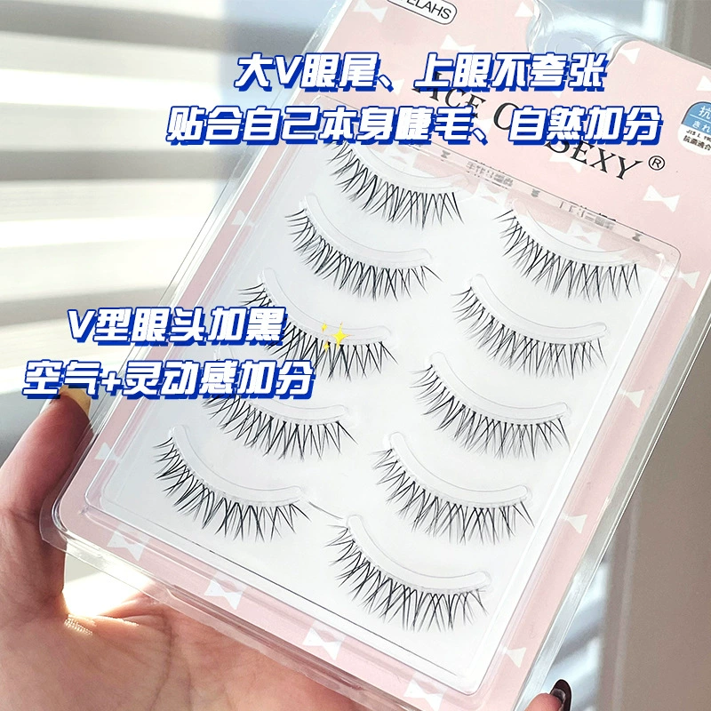 | nameOriginal | Fairy hair naturally curly cross comic eye V-shaped transparent stems 5 pairs of eyelashes thin stems replacement A05 false eyelashes cos |