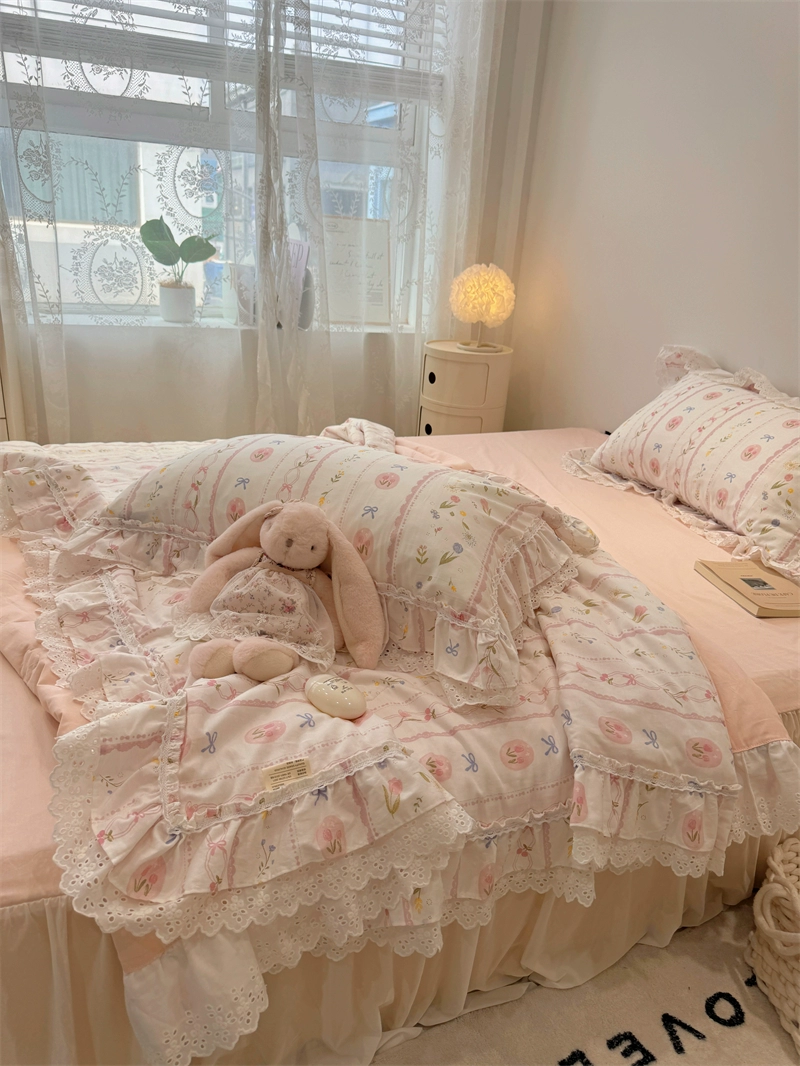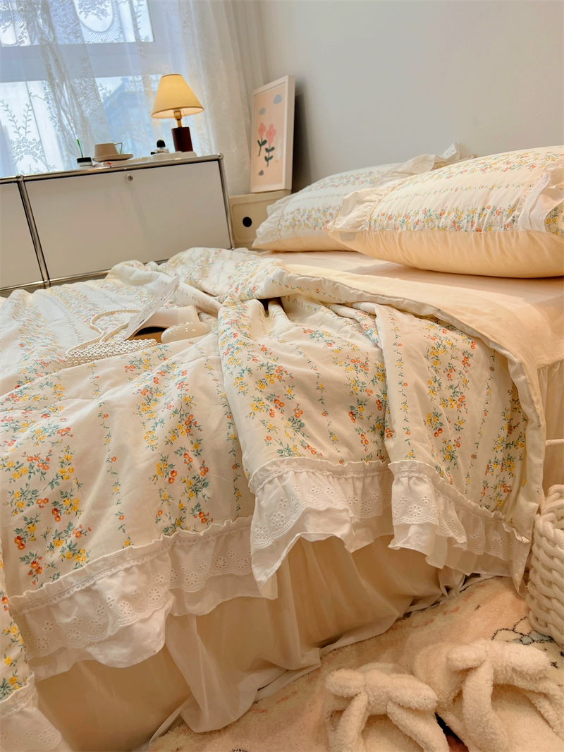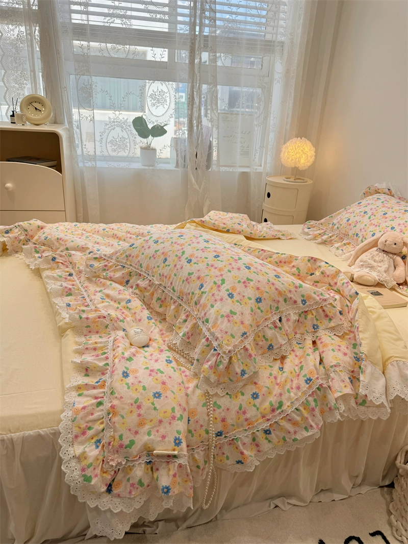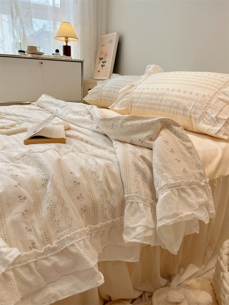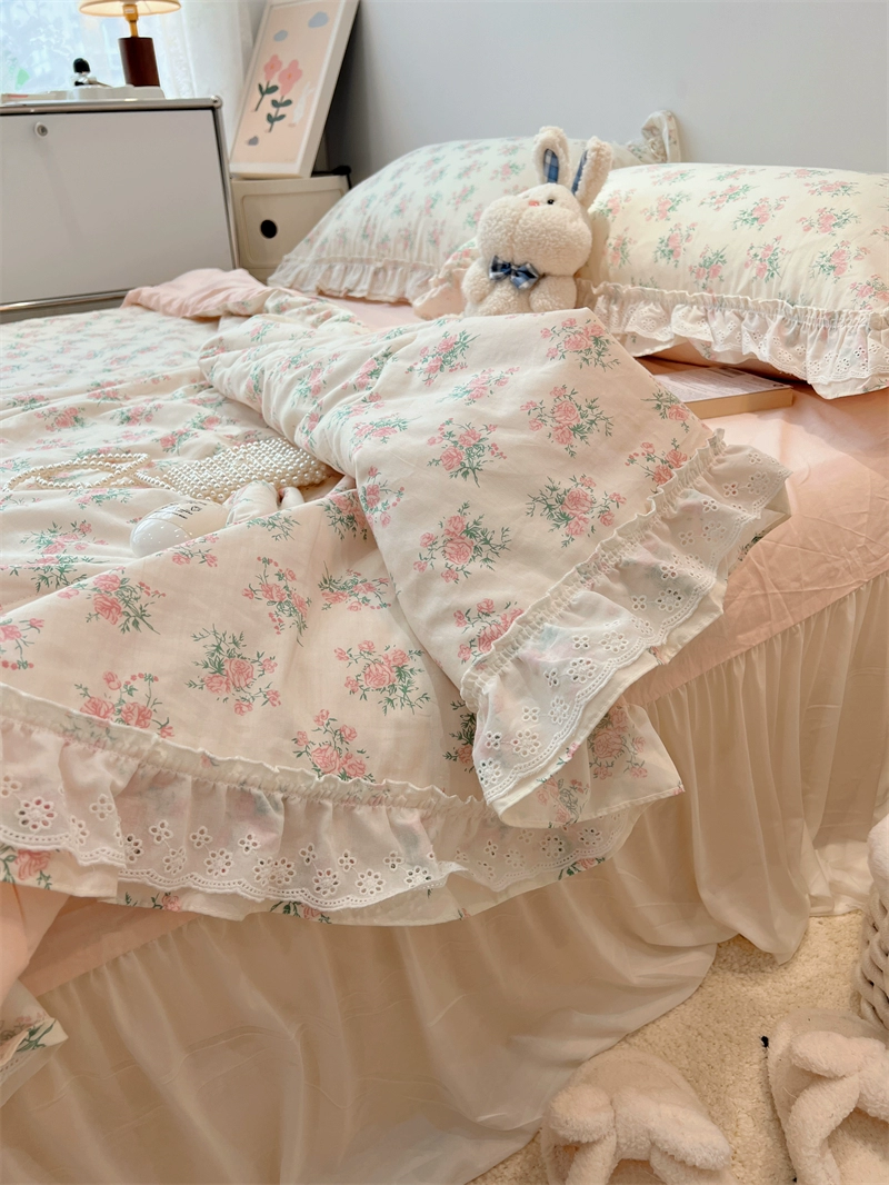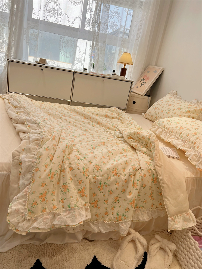 | nameOriginal | Fairy ruffled cotton summer quilt four-piece set for girls skin-friendly machine washable cotton air-conditioning quilt three-piece thin quilt set |