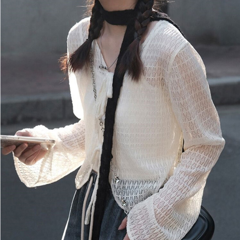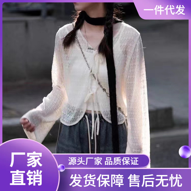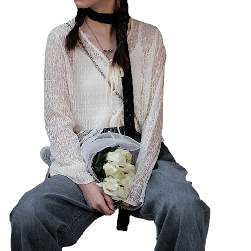 | nameOriginal | Fairy Style 2024 Summer Thin Lace Cardigan External Ice Silk Mesh Long Sleeve Lace-up Sunscreen Top for Women |