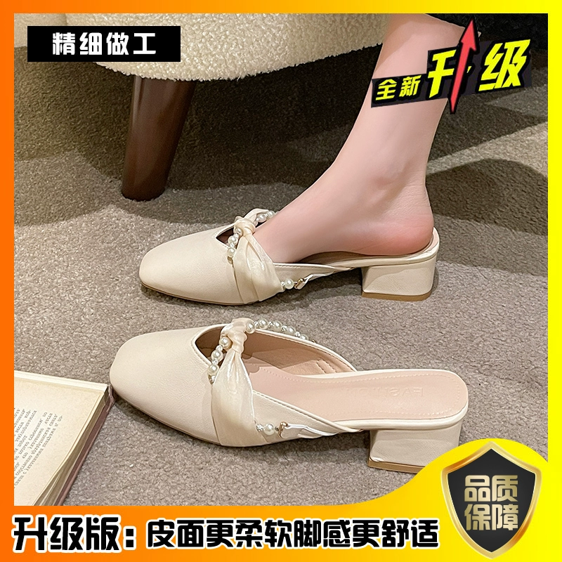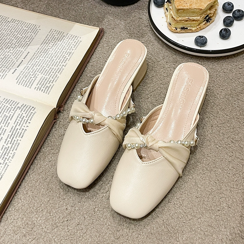 | nameOriginal | Fairy style outer wear summer mid-heeled pearl half slippers |