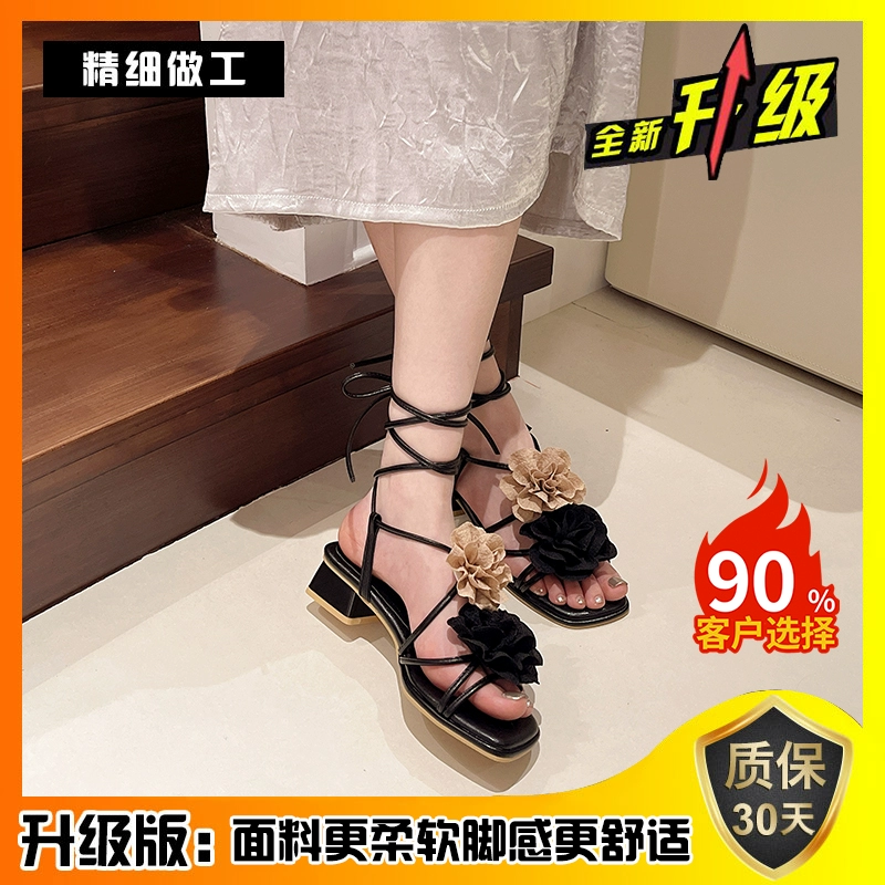 | nameOriginal | Fairy style strappy sandals with thick heel and flower skirt |