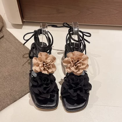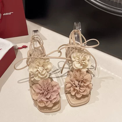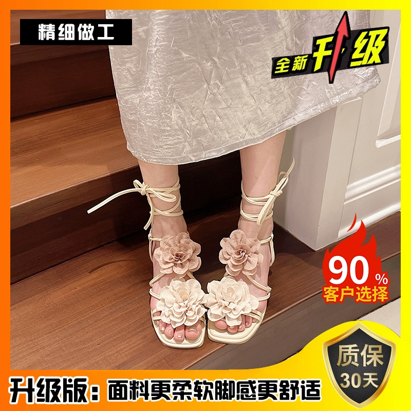 | nameOriginal | Fairy style strappy sandals with thick heel and flower skirt |