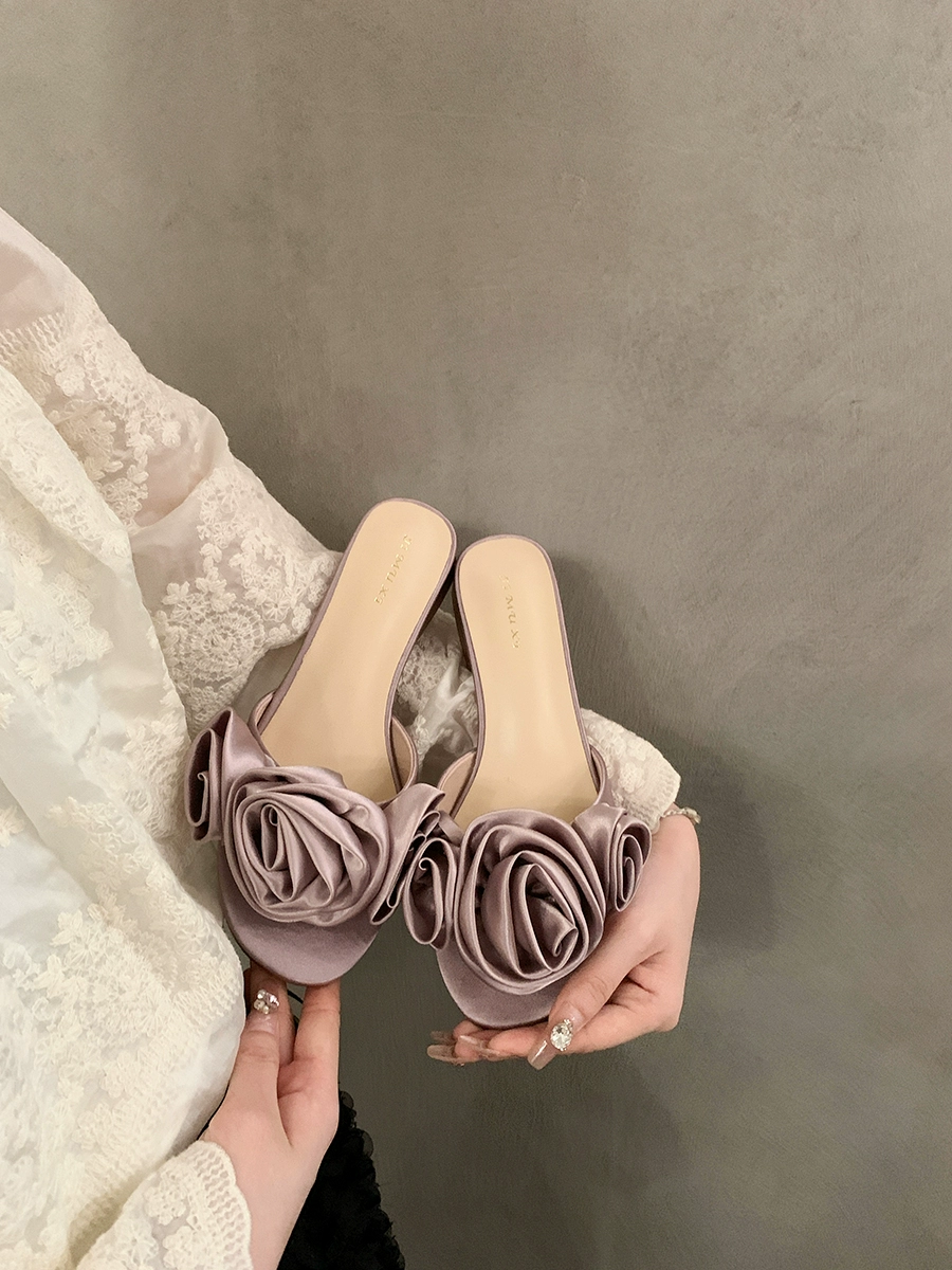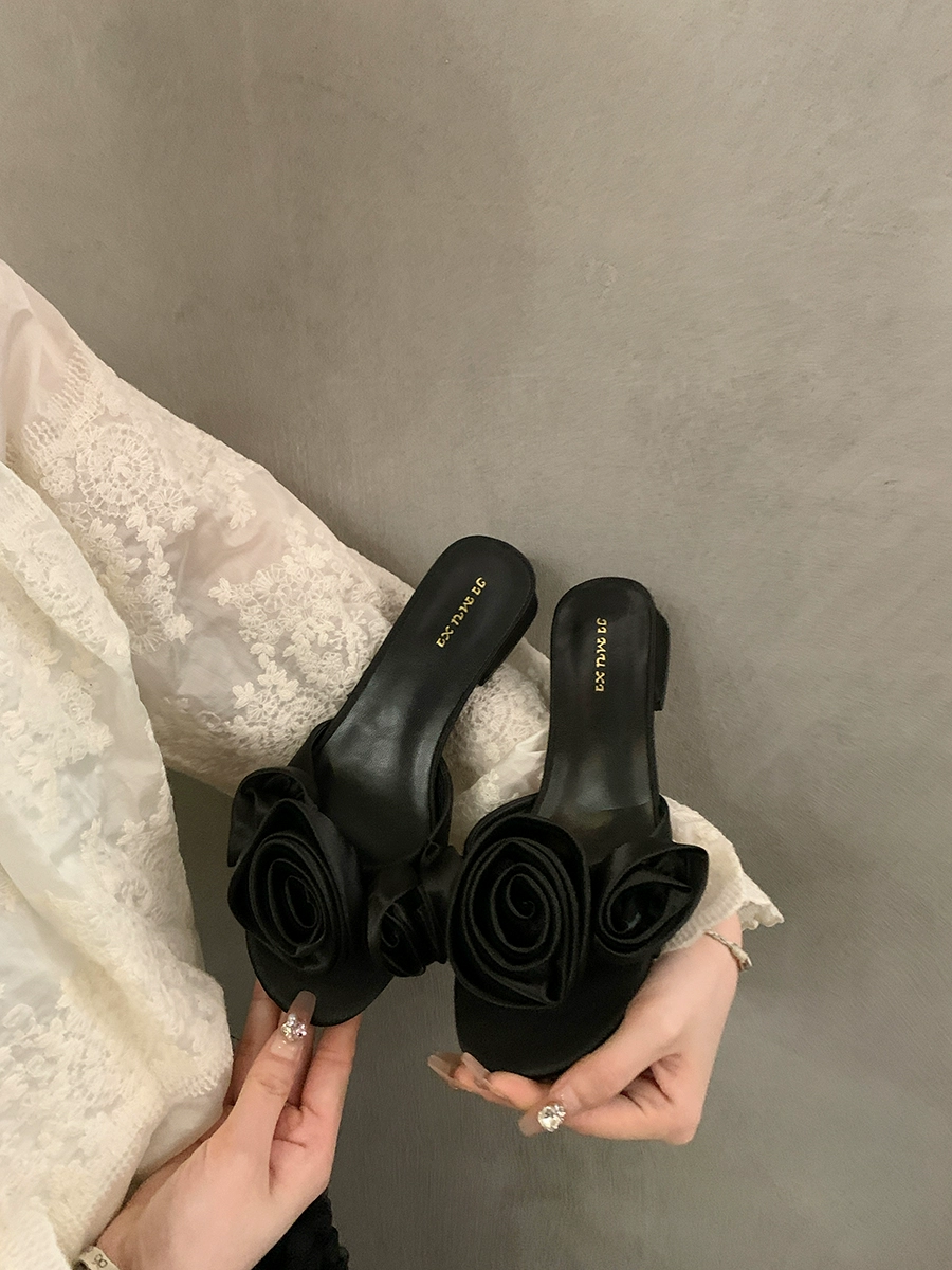 | nameOriginal | Fairy thick heel black flower temperament sandals |
