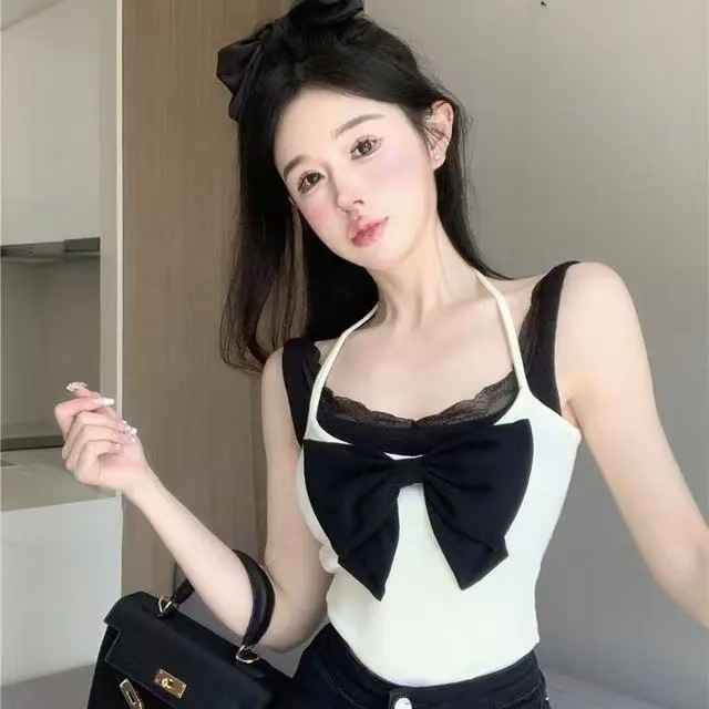 | nameOriginal | Fake Two-piece Bow Camisole Women's Summer French-style Sweet Spice Girl's Neck Lace Short Top for Outer Wear |