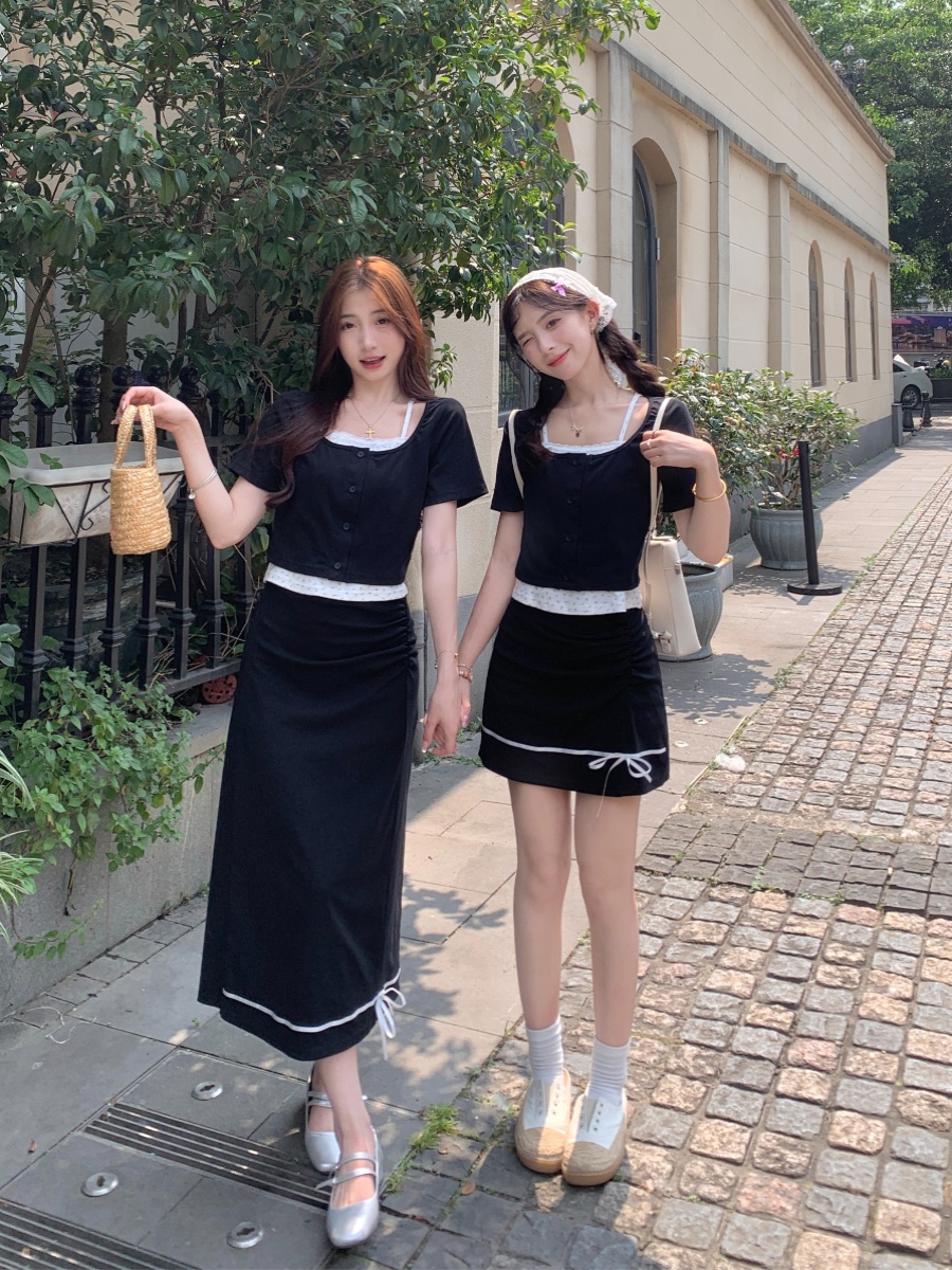 Fake two-piece contrasting color high-waist slimming hip-hugging fashion suit
