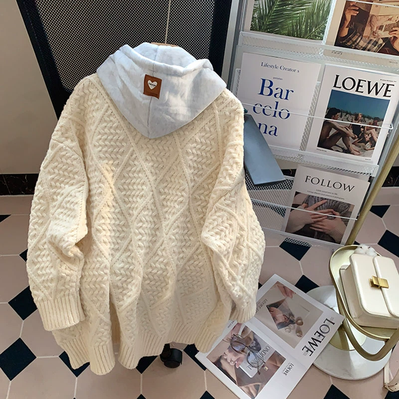 | nameOriginal | Fake two-piece hooded sweater jacket 2022 new hot style women's autumn and winter loose lazy style mid-length knitted cardigan |