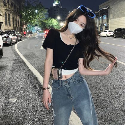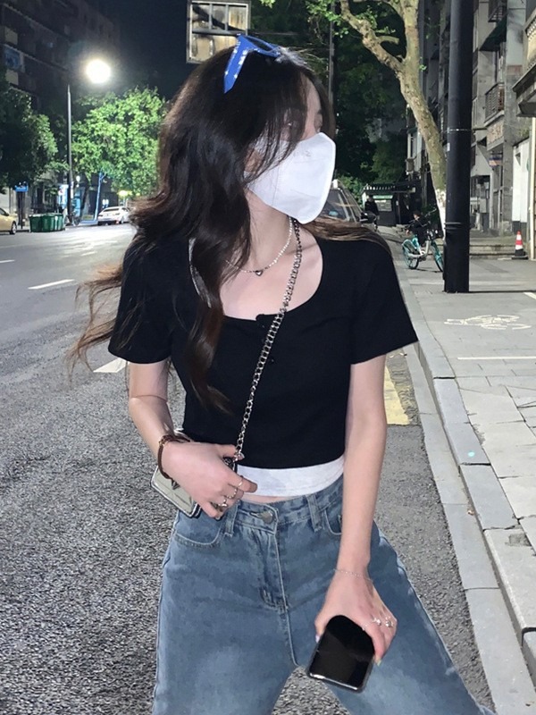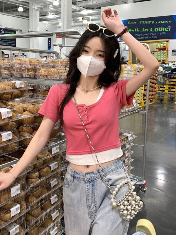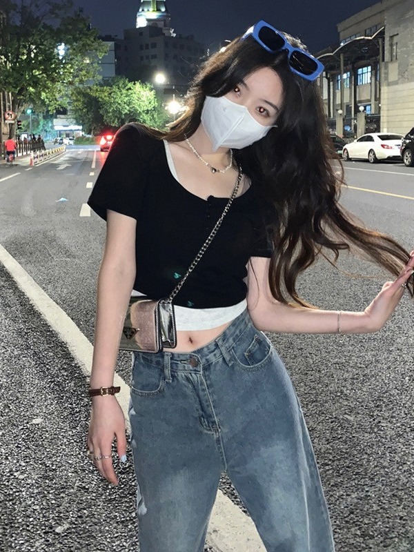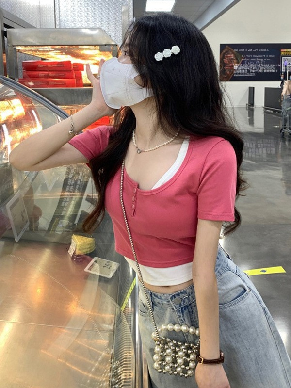 | nameOriginal | Fake Two-piece Short-sleeved T-shirt Women's Summer 2024 New Design Sense Korean Style Slim-fit Slim-fit Short Cropped Top Ins |