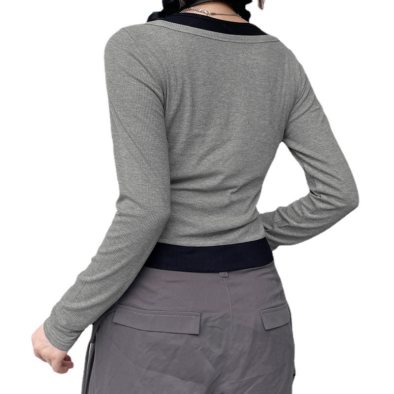 | nameOriginal | Fake Two-piece Stitching Color Half-open Collar Button Retro Top Women's Bare Shoulder Slim-fit Slim-fit Base T-shirt |