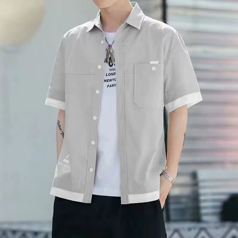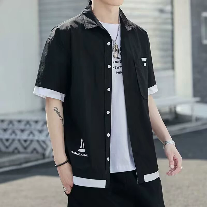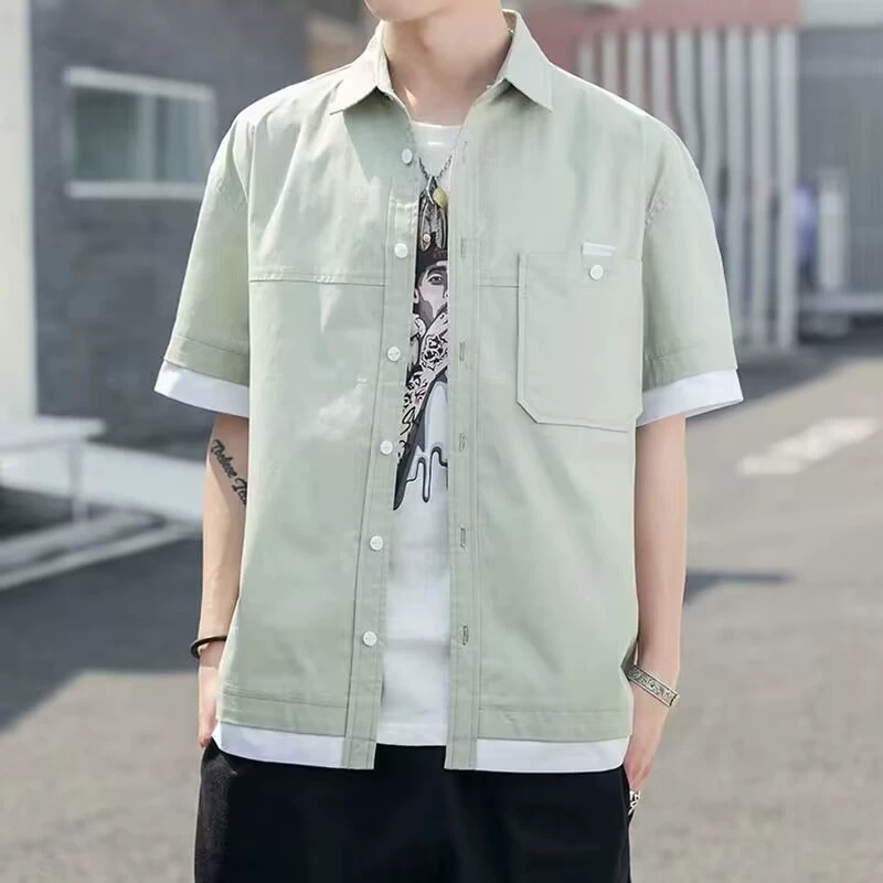 | nameOriginal | Fake two-piece workwear short-sleeved shirt for men summer thin loose printed half-sleeved shirt men's trendy casual jacket |