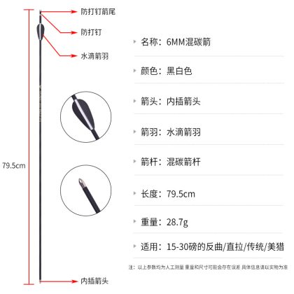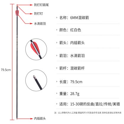 | nameOriginal | Falcon 6mm Mixed Carbon Arrow Water Drop Glue Feather Arrow Composite recurve Bow General Arrow Archery Practice Arrow Branch |