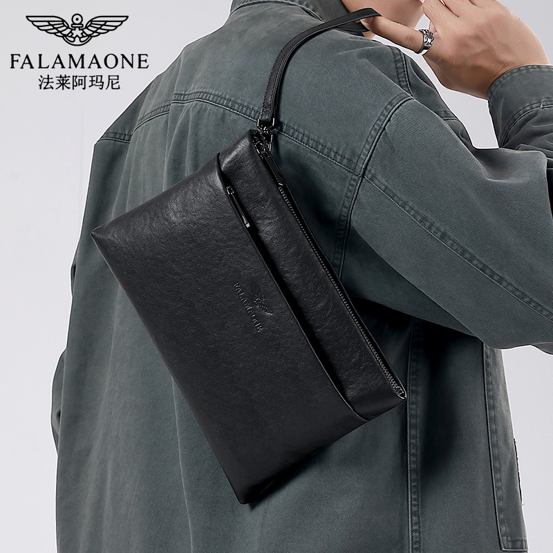 Faleamani Black Shoulder Bag Men's Leather Bag Casual Fashion Commuter Small Backpack All-match Cowhide Bag