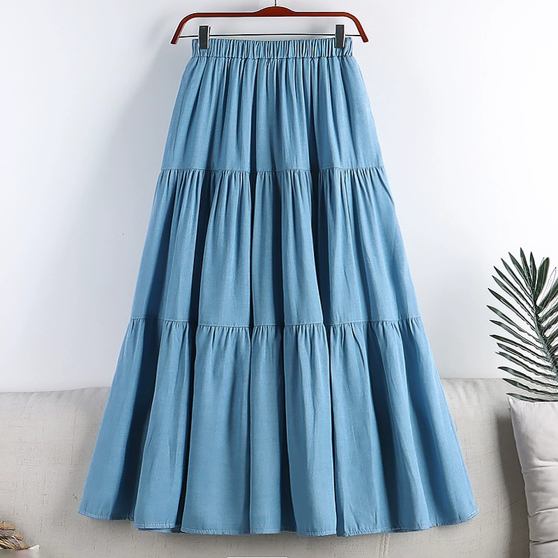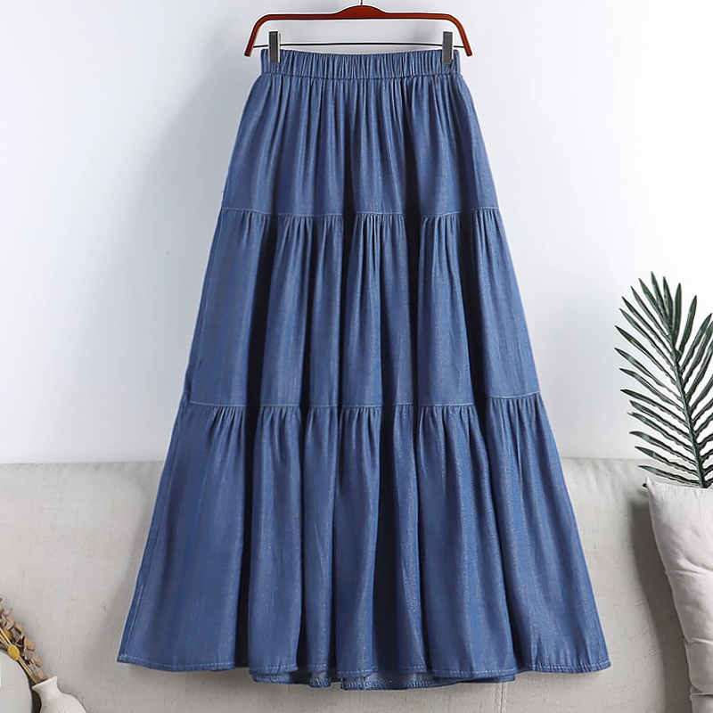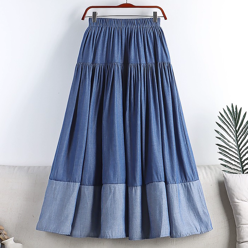 | nameOriginal | Fall 2022 patchwork mid-length denim skirt with wide hem |