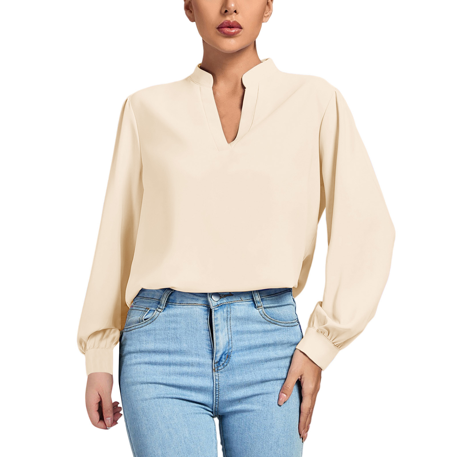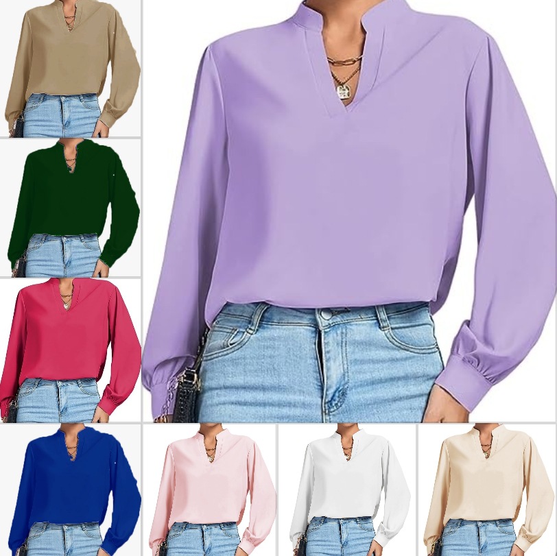 Fall 2024 New Amazon AliExpress cross-border Women’s V-neck long sleeve loose shirt shirt top in stock