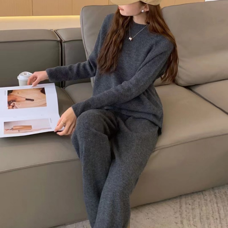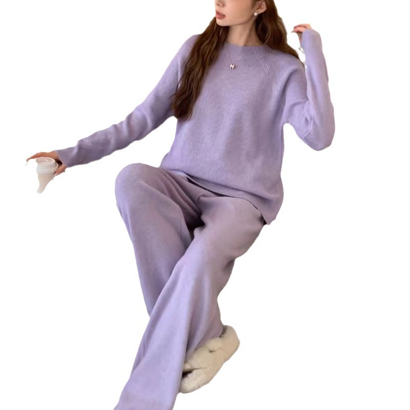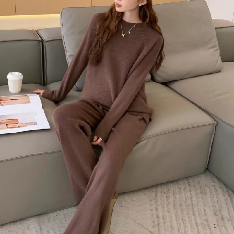 | nameOriginal | Fall/Winter 2024 New Korean Style Lazy Style Knitted suit Pants Women's Crewneck Sweater Wide-leg Long Pants Two-piece Set for Women |
