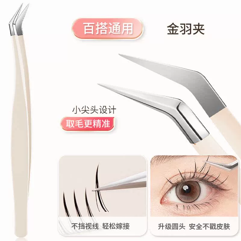 | nameOriginal | False eyelash tweezers, eyelash curlers, pointed eyebrow clips, novice round-headed elbow eyelash curlers, pointed-mouthed gold feather clips |