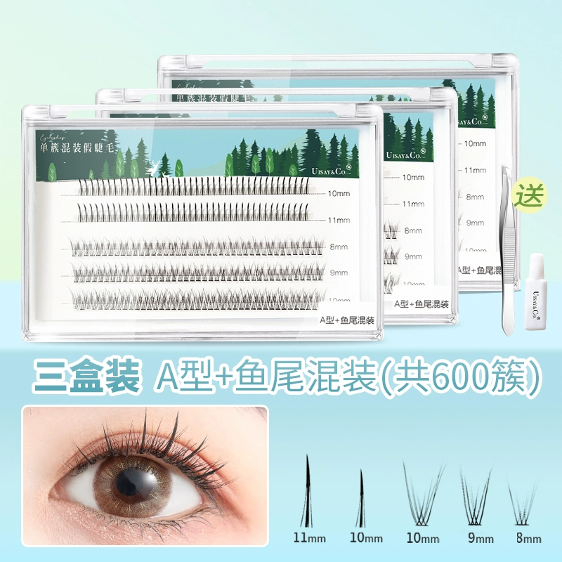 | nameOriginal | False eyelashes for female novice fishtail fairy replacement thin stem lazy man trilogy grafting upper eyelashes single cluster natural simulation |