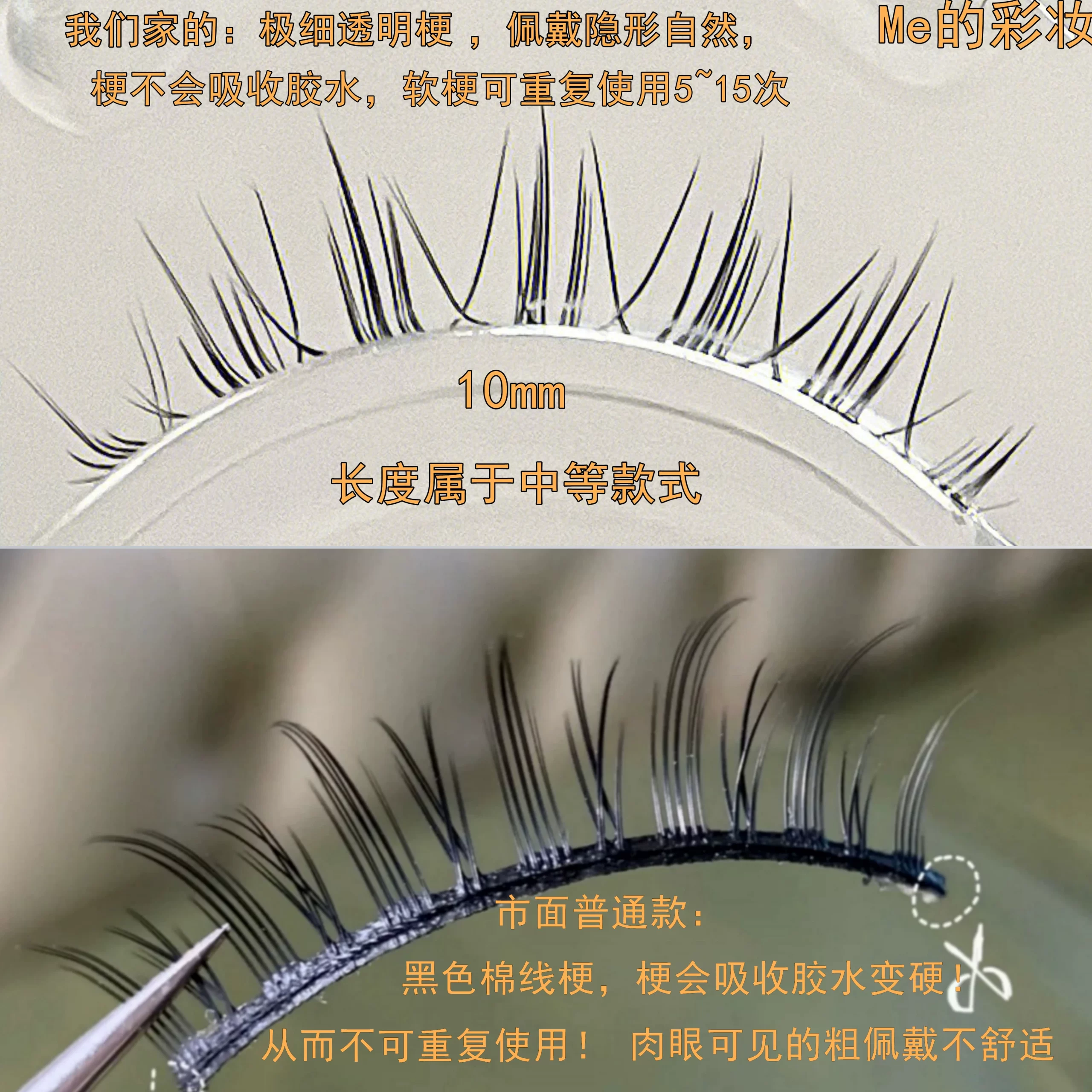 False eyelashes for women, natural simulation, extremely fine transparent stems, light nude makeup, no makeup, whole one-piece eyelashes, natural style